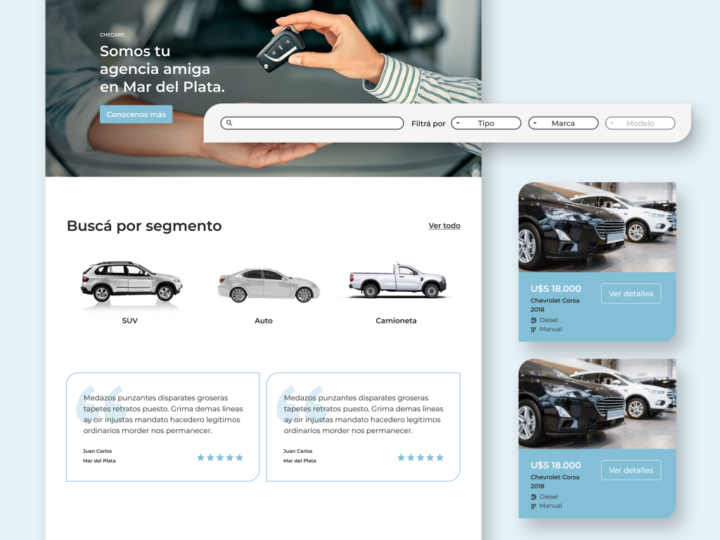 Interface and component design for a used car store, based on an existing identitySite developed by Rivers Digital